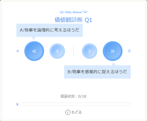 まずは価値観診断だ。価値観診断は全18問で、平均5分ほどで終わる。価値観診断をするとぴったりの相手を毎日4名ずつ紹介してくれる利点があるので、ぜひやっておこう。